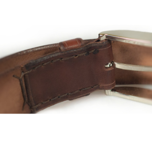 Spona je k opasku přišitá důmyslným způsobem kvalitní dratví. Tento způsob je oproti uchycení šroubkem pracnější avšak trvanlivěhší a spolehlivěhší.